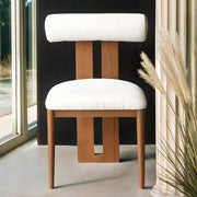 La chaise Nayla est une ode à la simplicité raffinée. Son dossier rectangulaire, légèrement incurvé, offre un excellent maintien du dos tout en apportant une touche graphique subtile à l’ensemble.