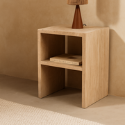 La table de chevet Aelia, réalisée en travertin naturel, allie élégance contemporaine et authenticité. Idéale comme table de chevet ou...
